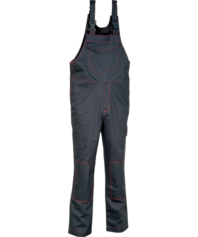 The FLAME bib overalls from the FLAME RETARDANT line are a reliable choice for professionals exposed to high temperatures and open flames. Made from 98% cotton and 2% carbon fibers with a weight of 310 g/m², these overalls provide exceptional comfort while ensuring superior protection. The flame-retardant coating and antistatic properties make them ideal for environments with a high risk of ignition or electrostatic discharge. Certified under EN ISO 11612 and EN ISO 11611 standards, the garment protects against flames, convective heat, and radiant heat.