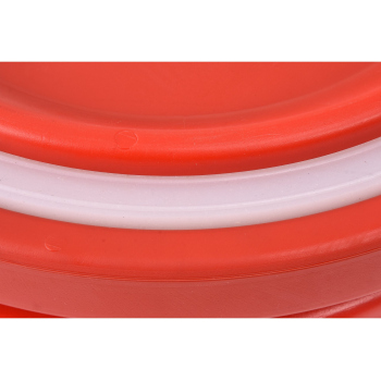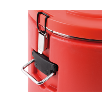 This advanced thermal insulation container is equipped with two stainless steel, **ergonomic and massive handles, significantly facilitating safe transport**, as well as **four solid latches, securely closing the lid**. The **extraordinary quality and exceptional durability of these components** guarantee many years of trouble-free and reliable use. Additionally, the container's design includes special **indentations enabling efficient stacking**, i.e., piling containers of identical diameter, which allows for **optimal space utilization and storage on a minimal surface area.**