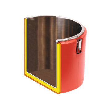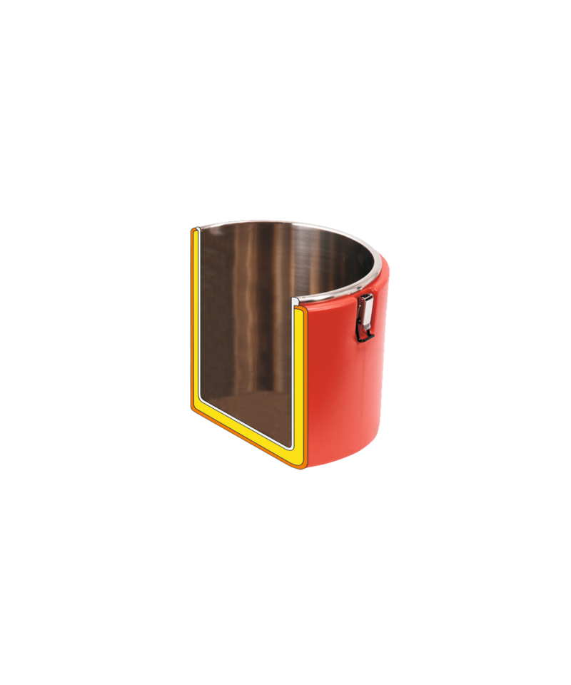 Between the inner tank and the outer walls, an **advanced thermal insulation layer** has been applied, which effectively maintains the desired temperature for long hours. For hot dishes, the heat loss is only **5°C within 4 hours**. For cold products, the temperature increase is a minimal **3°C within 4 hours**. This exceptional thermal insulation performance **places the YATO container among the top most thermally efficient catering solutions for safe food storage.**