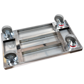 Trolley for conical containers with dimensions 500 x 500 mm made of polyethylene.