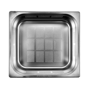 We present a professional perforated GN container by YATO, made of high-quality stainless steel. With standard dimensions of **GN 2/3** and a depth of **100 mm**, it offers a capacity of **8.0 l**. Gastronorm containers from the **YATO Professional Kitchen Equipment** line have been designed for **intensive, professional use** in gastronomy and mass catering establishments. Made from **top-quality 201 type stainless steel**, characterized by a matte, smooth surface, they meet the rigorous standards of **GASTRO NORM PN-EN 631-1:1996**. Their versatility allows for safe food storage across a wide temperature range: from deep freezing down to **-40°C** to applications requiring high temperatures, up to **300°C**. This makes them ideal for use in **combi steam ovens**. They stand out with **exceptional resistance** to mechanical damage, organic acids, and aggressive detergents. This feature makes them **excellent for dishwasher cleaning** and withstands intensive cleaning, maintaining an impeccable appearance. Attention to detail is visible in the **rounded corners and smooth edges**, which guarantees the **highest level of safety and hygiene** during daily work. **Special embossing around the perimeter** of each container significantly strengthens its construction, protecting against deformation during intensive use and facilitating **safe stackable storage**.
