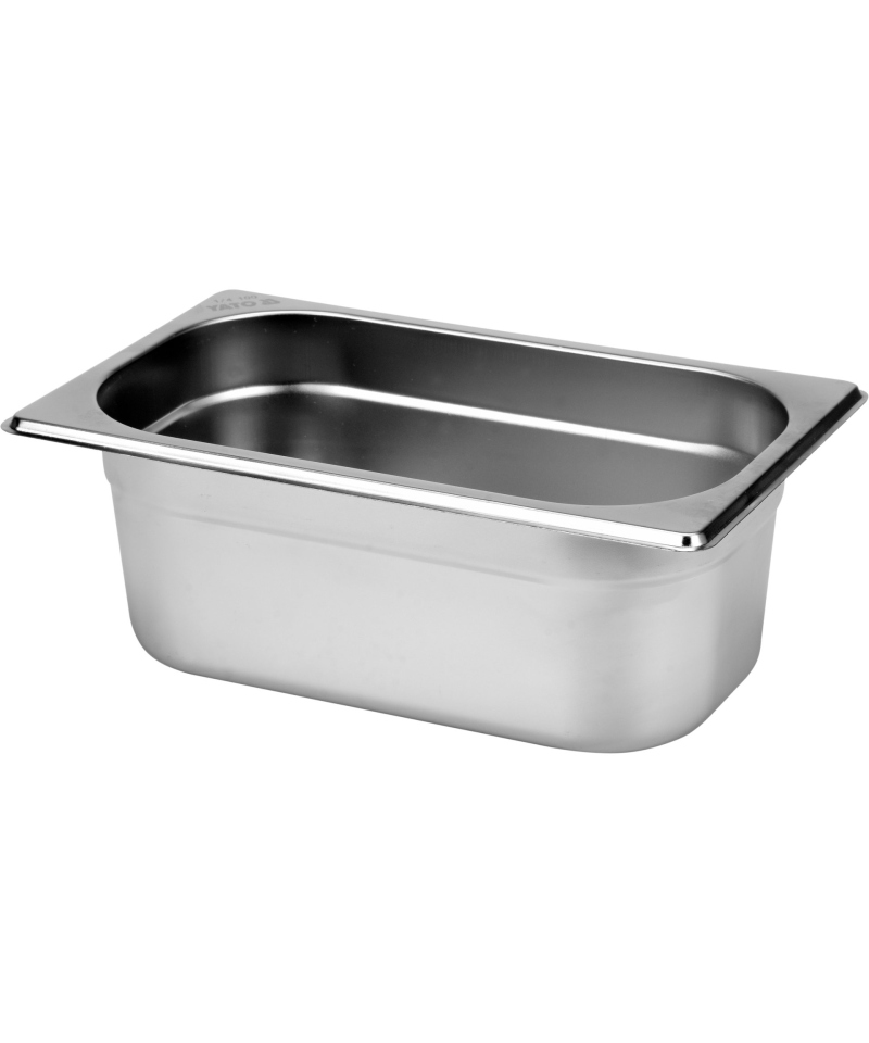 We present a professional GN container by YATO, made of the highest quality stainless steel. It offers dimensions of **GN 1/4, 100 mm** and a capacity of **2.5 l**, perfectly meeting the needs of any professional kitchen. The **YATO Professional Kitchen Equipment** line of gastronomic containers was created for **intensive, professional use** in the HoReCa sector and mass catering facilities. Made of **highest quality 201 type stainless steel**, they feature a matte, smooth surface and fully comply with the rigorous GASTRO NORM PN-EN 631-1:1996 standardization, guaranteeing safety and hygiene. Their versatility allows for safe food storage in refrigeration and freezing conditions – down to -**40°C**. They perform equally well in high temperatures, up to **300°C**, enabling their effective use in combi steam oven technology. They are distinguished by **exceptional resistance to mechanical damage, as well as to organic acids and strong detergents**. Thanks to this, **they can be safely washed in dishwashers** and are resistant to intensive cleaning, which facilitates maintaining hygiene. When designing them, particular attention was paid to details such as **precisely rounded corners and smooth edges**, which significantly enhances safety and hygiene of use. **Special embossing around the container's perimeter further strengthens its construction**, effectively protecting against deformation during intensive use and facilitating stable stacking.