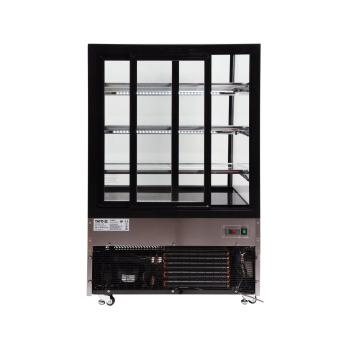 The YATO 500L freestanding refrigerated display cabinet in elegant black, with dimensions of 900x805x1445mm, is the ideal solution for professional product display. Designed for patisseries, cafes, restaurants, and retail outlets, the YATO display cabinet perfectly showcases cakes, tarts, cocktails, yogurts, refreshing drinks, as well as salads or small snacks, encouraging customers to make a choice. Modern design combined with high-quality materials ensures that the display cabinet will become an aesthetic and functional element of any interior.