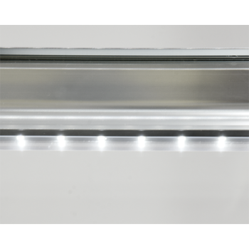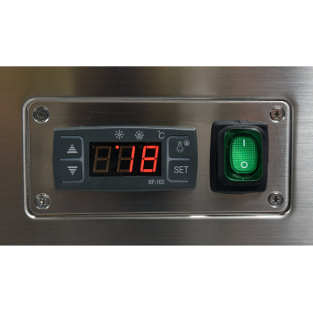 The display cabinet operates in an optimal temperature range of 0 to 12°C, using the ecological refrigerant R290. The applied circulating air cooling technology combined with the automatic defrost function guarantees extremely efficient and energy-saving operation. Circulating cooling ensures even air distribution throughout the entire display cabinet, maintaining a constant temperature on each shelf, which is crucial for product freshness. The average annual energy consumption is 2809 kWh. Precise control of the display cabinet is carried out using an electronic controller with a clear temperature display.