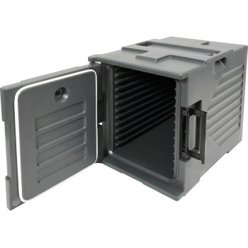 COMBI ISOTHERMAL CONTAINER, - front loading, has a door, - additionally has side walls with 3/5 slats, (spacing 12.0 / 8.0) or 1/9 (spacing 25.5 / 4.0 cm, for trays or trays, - stackable, also in this condition, easy to close and open, - external dimensions, cm (length x width): 70.0 x 58.0, - internal dimensions, cm (length x width): 62.0 x 40.5