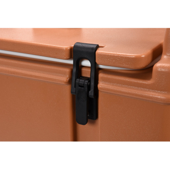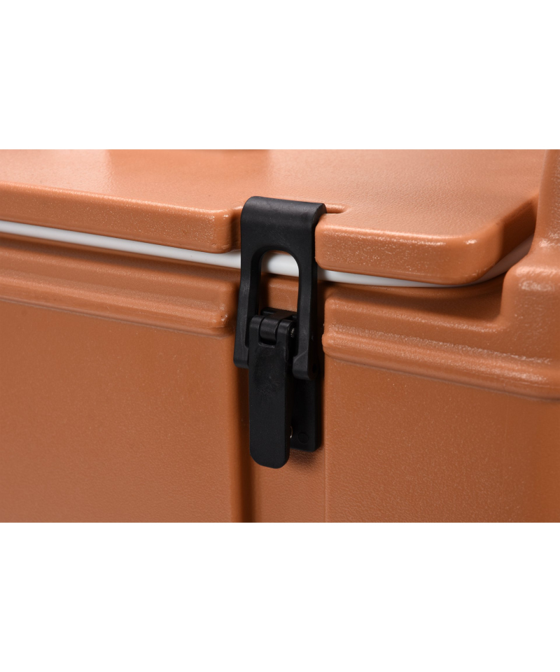 The airtight top lid, secured by 4 sturdy latches, is equipped with a silicone gasket that guarantees complete sealing and prevents liquids from spilling. Additionally, the lid features an integrated special vent that effectively equalizes pressure inside the thermos, allowing for smooth pouring without the risk of airlocks.