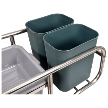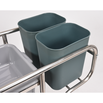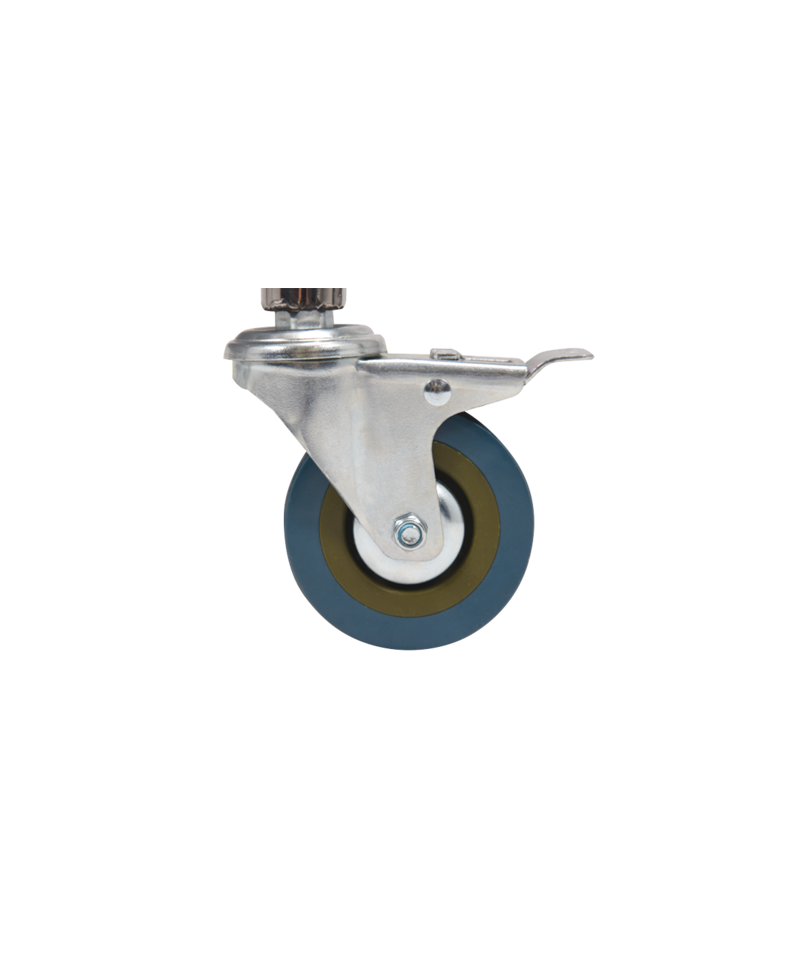 For maximum mobility and user comfort, the trolley is equipped with 4 solid wheels with bearings, made of high-quality grey TPR material. This innovative combination of material hardness and flexibility guarantees extremely quiet operation and smooth movement. The wheels are completely safe for floors – they do not scratch the surface and leave no marks on it. Their full 360° swivel capability significantly facilitates maneuvering in tight spaces and narrow corridors. Additionally, for increased safety and stability, two of the wheels are equipped with reliable brakes.