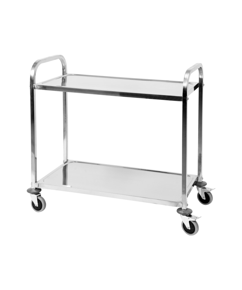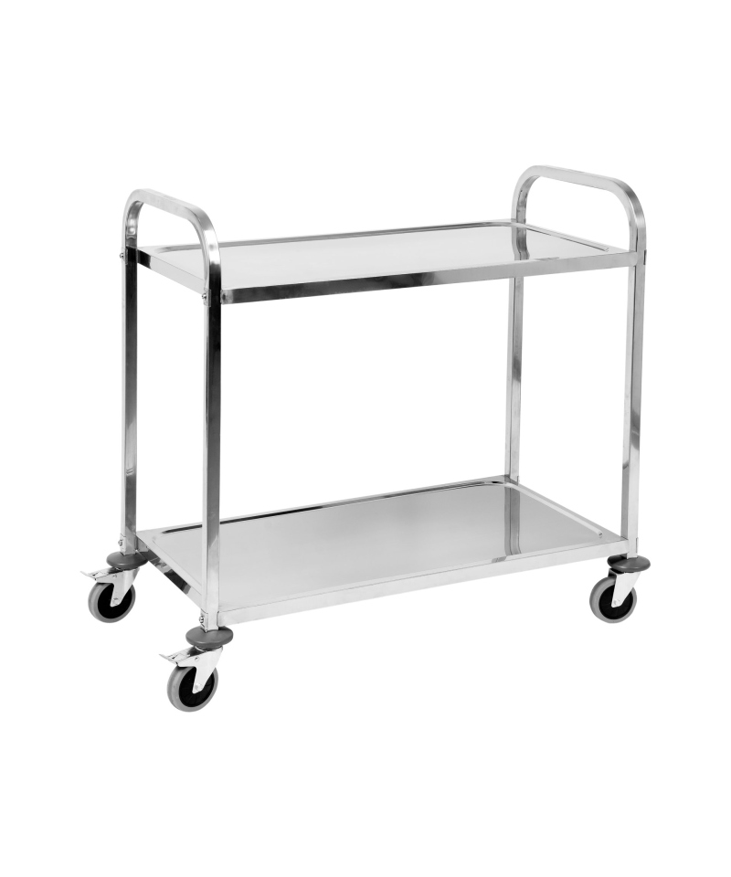 Two spacious shelves with dimensions of 890 x 495 mm are equipped with a special rim that effectively protects transported products from slipping during movement. All edges of the trolley are carefully rounded, which significantly increases user safety, minimizing the risk of injury.