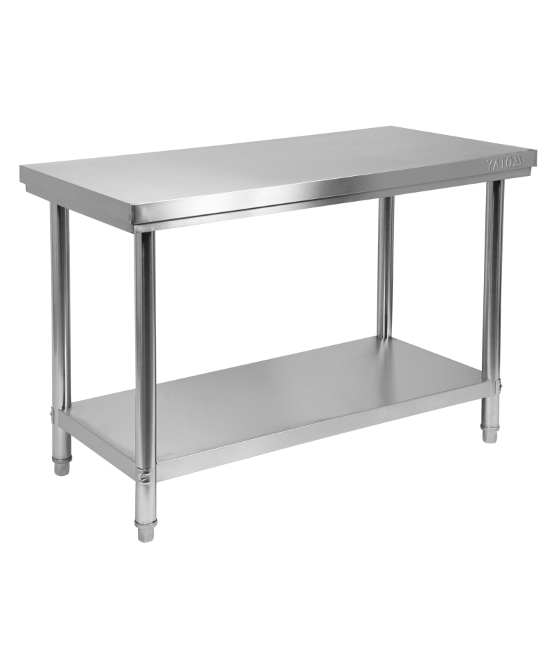 We present a central screw-assembled table with a practical shelf from YATO, characterized by optimal dimensions: 1200 mm width, 700 mm depth, and 850 mm height.