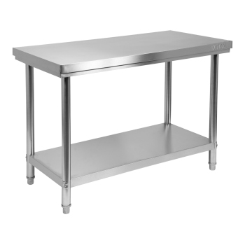 The table's construction is made of the highest quality **SS201 stainless steel**, specially adapted for intensive use in demanding catering environments. Precise welded joints and perfectly smooth surfaces guarantee exceptional **ease of cleaning**, which is crucial for work hygiene.