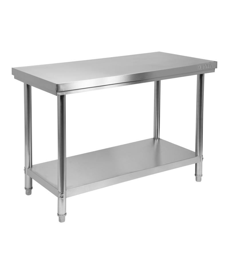 Discover the functionality and durability of the **YATO** central screw-assembled table with a shelf, ideal for professional kitchens. Its optimal dimensions of **1000 x 600 x 850 **mm (width, depth, height) ensure comfortable work.