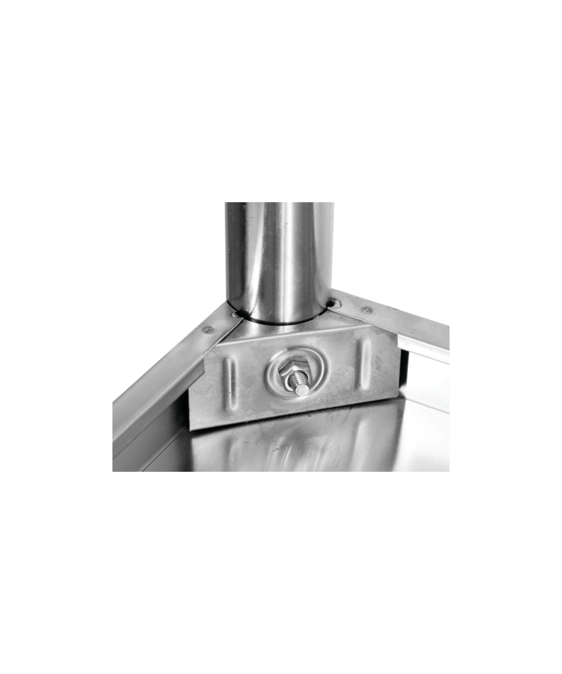Made of 18/10 stainless steel. Round profile frames. Shelves 800x500 mm around the perimeter surrounded by a profiled edge
