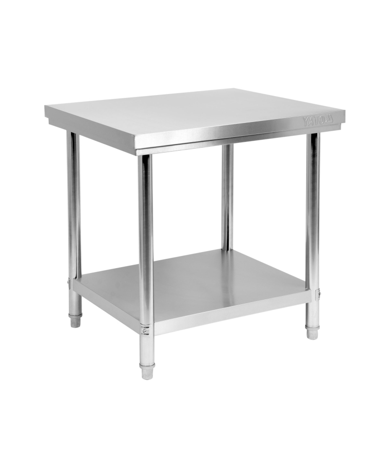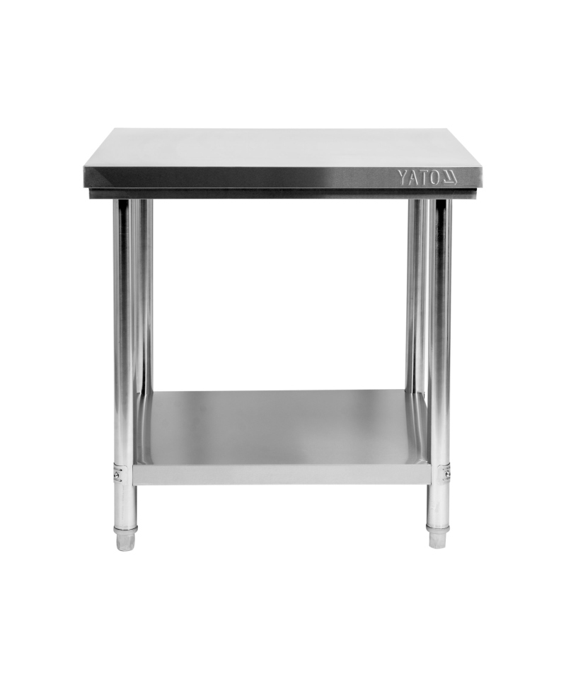 We present a professional screw-assembled central table with a practical shelf, branded YATO. Its optimal dimensions are 800 x 700 x 850 mm (width, depth, height), perfectly suited for gastronomy needs.