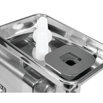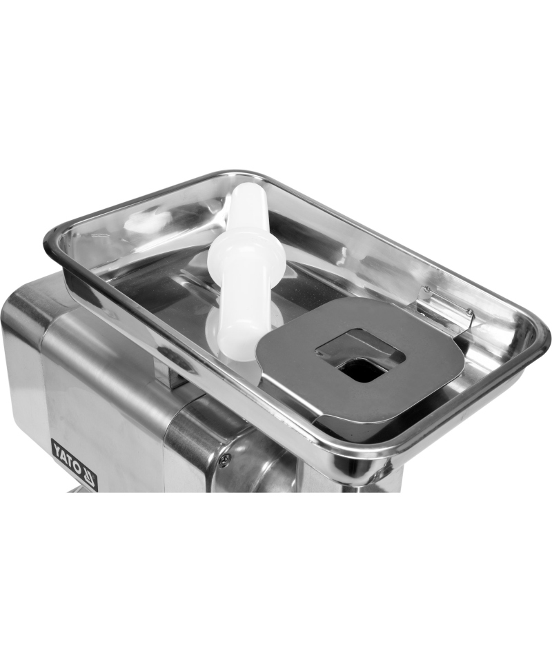 The key components of the meat grinder – the worm, cutting blade, and sieve – in the YATO model are made of the highest quality stainless steel, which guarantees their durability, corrosion resistance, and full compliance with hygienic standards. The loading tray, also made of stainless steel, stands out for its exceptional strength and capacity, enabling efficient processing of large quantities of meat. Its smooth surface is extremely easy to clean. Additionally, the loading trays in YATO grinders are detachable – simply unscrew the screw located under the tray, which facilitates comprehensive cleaning.