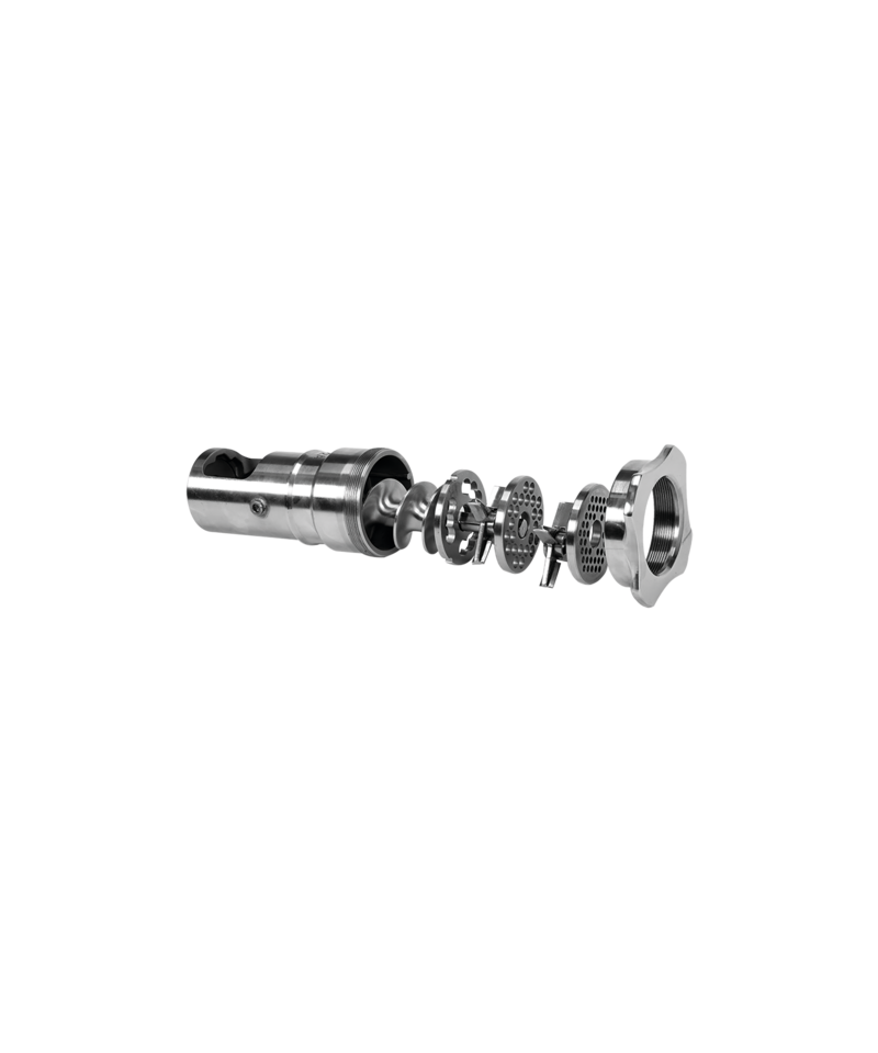 Included with the grinder, you will find 3 sieves: one with a diameter of 4.5 mm and two with a diameter of 8 mm. This variety allows for flexible configuration of the grinding system (e.g., 8/4.5 mm or 8/8 mm), enabling precise adjustment of the meat's fineness to specific needs and recipes.