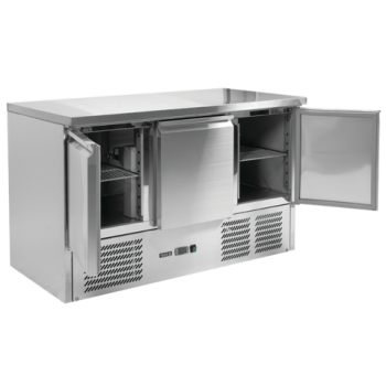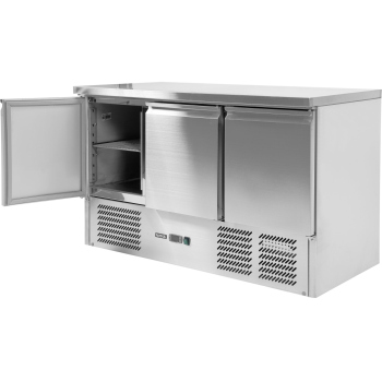 We present a professional 3-door refrigerated counter with a functional worktop, model YATO YG-05300.
