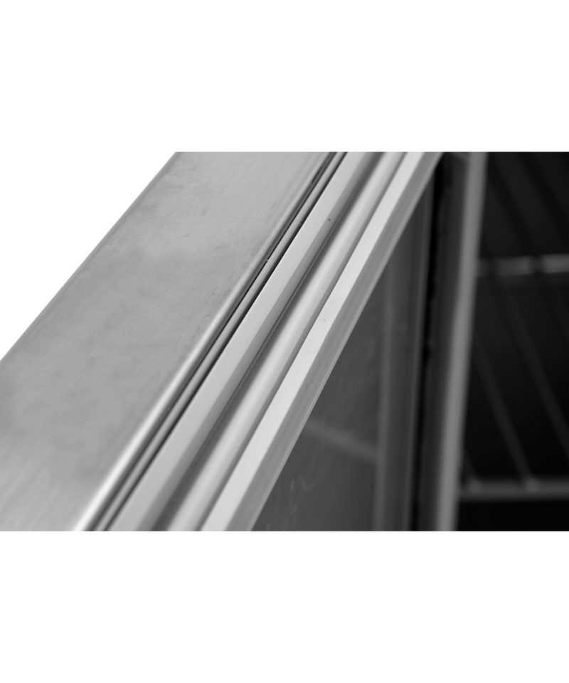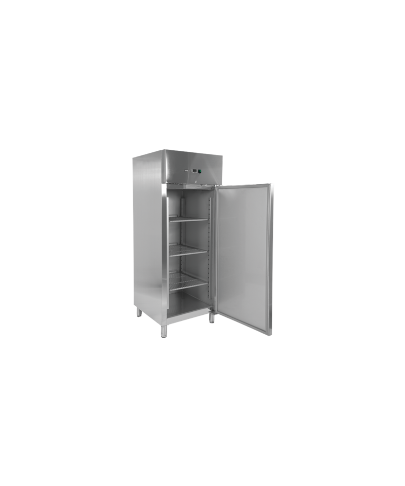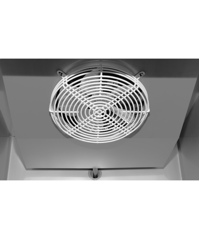 Cooled refrigerator, forced air circulation, with automatic unit. defrosting and hot gas condensate evaporation, adjustable with digital display. Central cooling with condensate drain. Hygienic interior with rounded edges and an embossed floor. Evaporator located outside the refrigerator compartment. The aggregate in the form of a monoblock located on the top of the device.