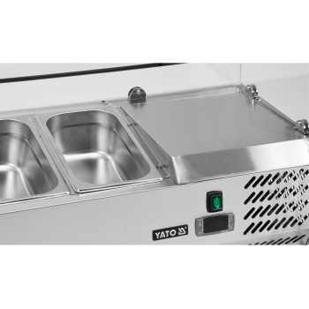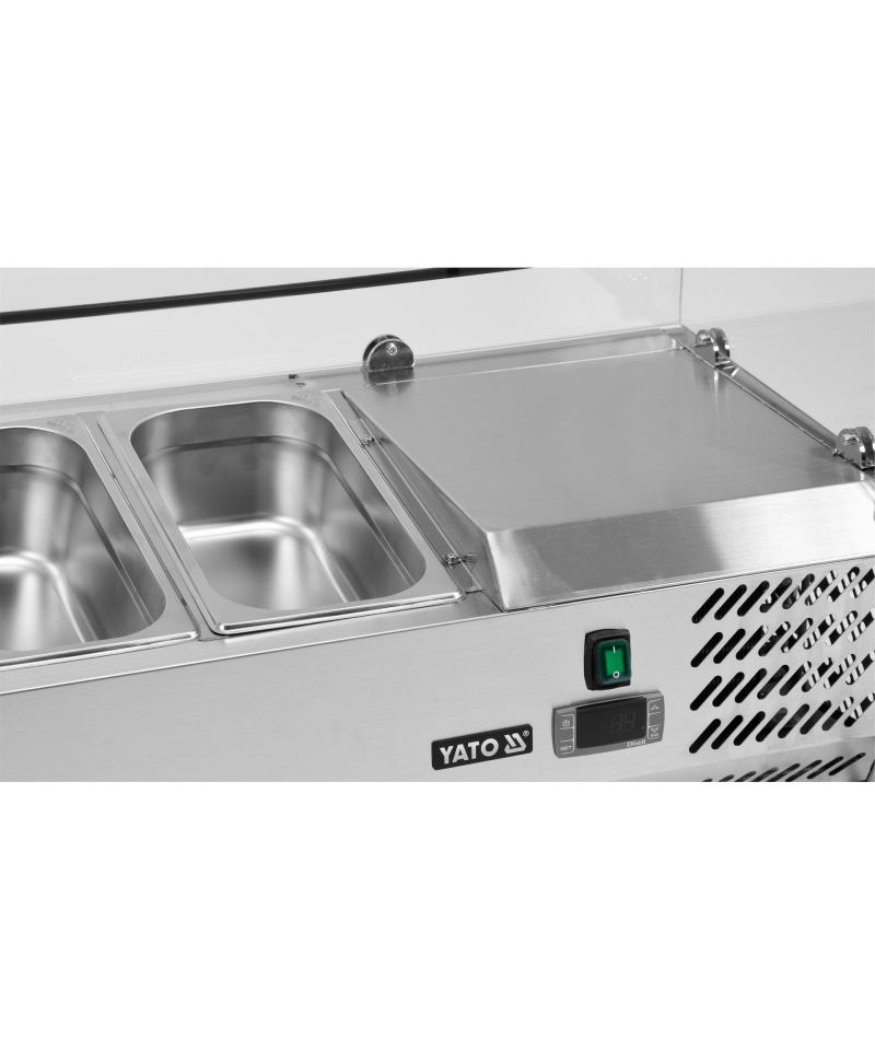 This innovative refrigerated display topping unit from YATO is the ideal solution for professional storage of ingredients such as fresh vegetables for salads, pizza toppings, or sandwich ingredients, guaranteeing their optimal freshness. Its modern design, combined with the use of the highest quality raw materials, makes the YATO display unit an elegant and functional piece of equipment for any restaurant, pizzeria, bar, or hotel, perfectly showcasing its contents.