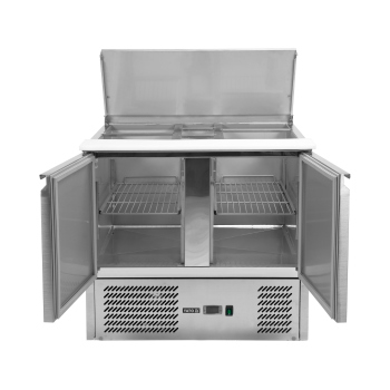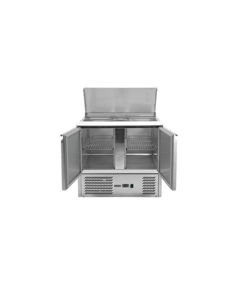 Discover reliability and functionality with the 2-door refrigerated salad counter with lid, model YG-05262, from the renowned brand YATO. This is the ideal solution for professional gastronomy.