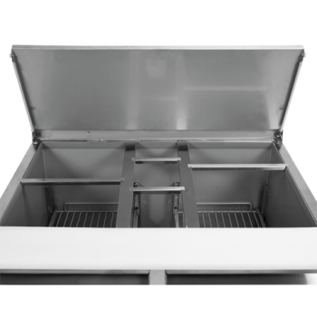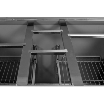 The functionality of the counter is enhanced by a durable polyethylene worktop, as well as a specially designed top opening for GN containers: 4x GN 1/2 and 3x GN 1/6, with a maximum depth of 150 mm. This is an ideal solution for organized storage of various toppings and salad ingredients, ensuring quick access and order. Please note that GN containers are not included in the set.
