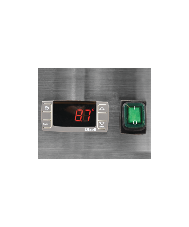 Both the external and internal casing of the counter are made of high-quality SS201 stainless steel, which not only ensures an aesthetic and professional appearance but also exceptional durability and ease of maintaining impeccable cleanliness. The practical, hinged top lid is also made of stainless steel, further enhancing hygiene and user comfort.