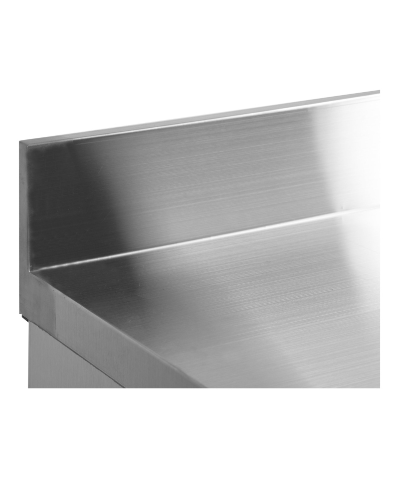 Both the external and internal casing are made of high-quality SS201 stainless steel, which ensures not only an elegant appearance but also exceptional durability and ease of hygiene maintenance. The functional worktop is equipped with a practical 100mm high rear upstand, protecting the wall from dirt. Stability and adaptability to uneven surfaces are guaranteed by 4 adjustable feet, allowing height adjustment in the range of 120-180mm.