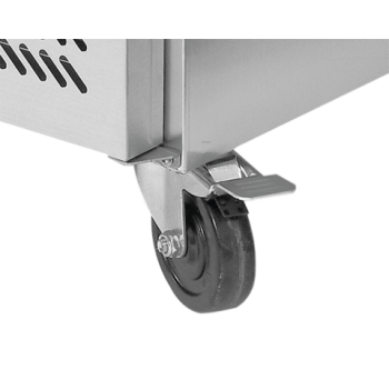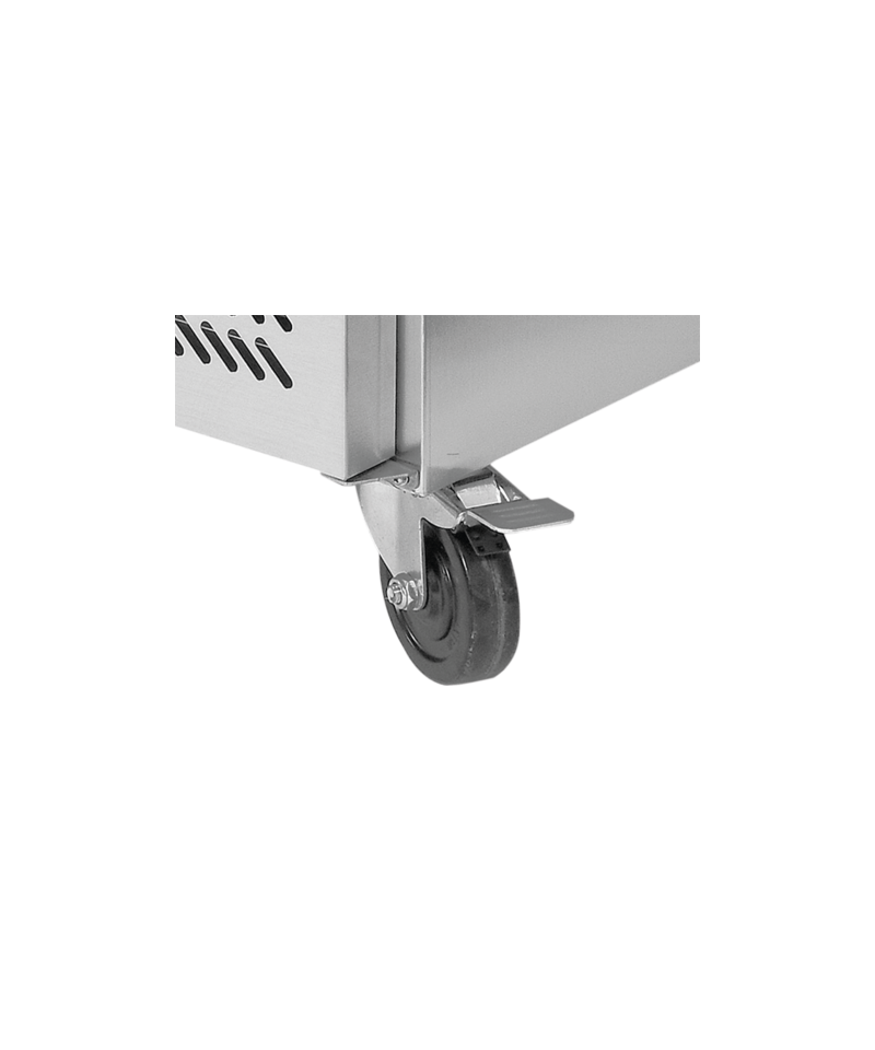 This model features self-closing doors with ergonomic handles, which increases user comfort and energy efficiency. Each door compartment contains 1 PVC-coated grid shelf, capable of supporting a load of up to 40 kg (with even distribution), ideal for storing GN 1/1 containers. Additionally, on the left side, there are 7 practical, non-refrigerated drawers, excellent for organizing accessories, spices, or small containers, providing easy access to essential work tools.