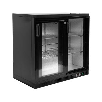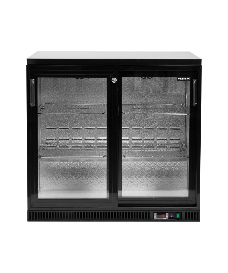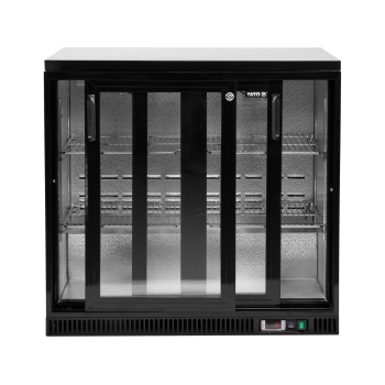 Introducing the professional YATO YG-05356 bottle cooler display, featuring an elegant design and two practical sliding doors.