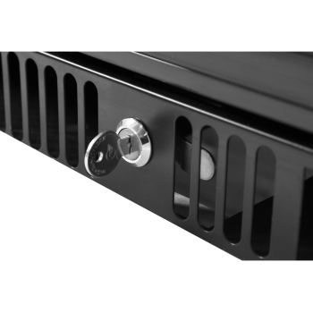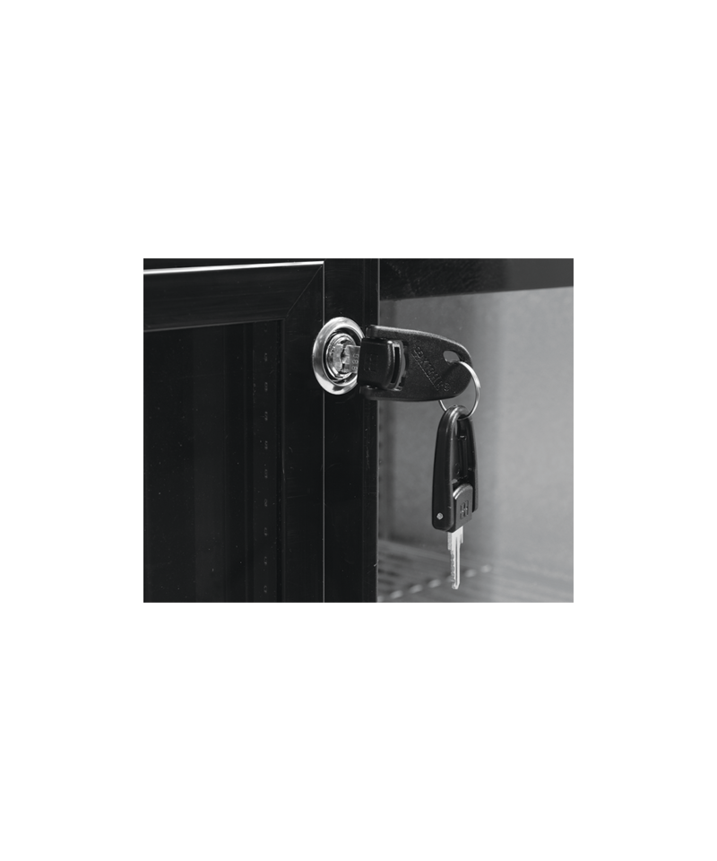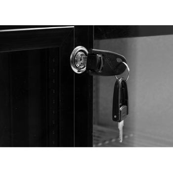 Two sliding doors, made of high-quality tempered glass, ensure excellent visibility and durability. For added security, the doors are equipped with a key lock, protecting the contents from unauthorized access. Inside the chamber are 4 sturdy, chrome-plated shelves, each with a maximum load capacity of 40 kg (with even distribution), allowing for flexible and efficient space organization.