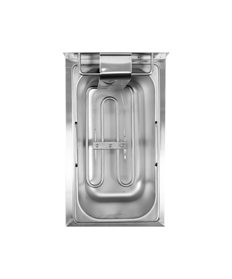 One of the key and extremely practical features of YATO fryers is the innovative function of the so-called "cold zone". This is a specially designed space between the heating element and the bottom of the tank. This mechanism utilizes a natural physical phenomenon: the heat generated by the heating element rises, heating the oil, while the oil temperature below the heating element remains lower. Thanks to this solution, any crumbs and food residues that fall to the bottom of the tank are kept in cooler oil, which effectively prevents them from burning and extends the freshness of the oil.
