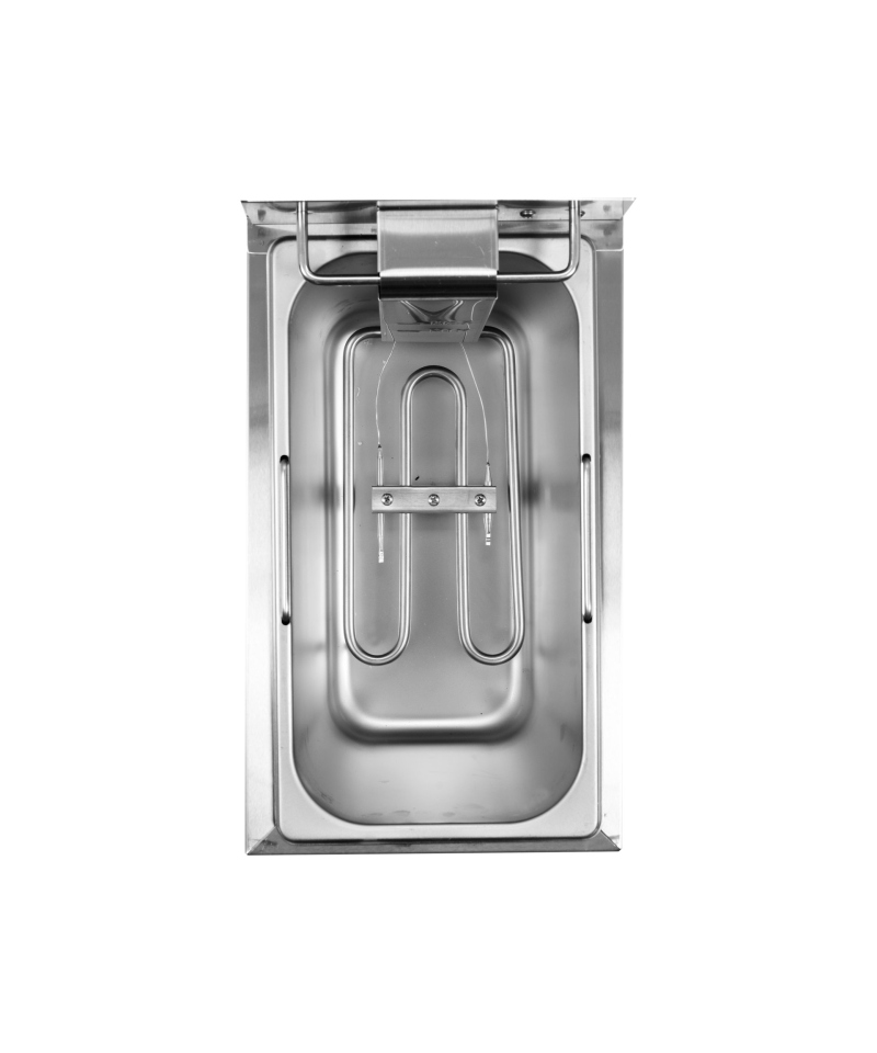 A particularly practical feature of YATO fryers is the innovative 'cold zone', a specially designed space between the heating element and the bottom of the tank. This function utilizes the natural phenomenon of convection – the heat generated by the heating element rises, heating the oil, while below the heating element, the oil temperature remains lower. Thanks to this solution, any crumbs and food residues that fall to the bottom of the tank are kept in cooler oil and do not burn, which significantly extends the freshness of the oil and improves the taste of the dishes.