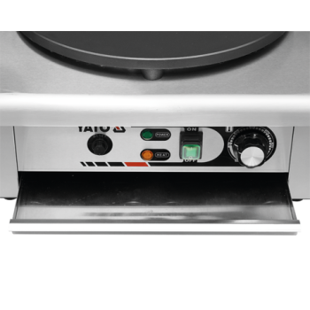 Professional crepe maker from YATO YG-04680 is an efficient device with a power of 3.0kW and a large heating plate diameter of 400mm, designed for efficient preparation of perfect crepes in any kitchen.