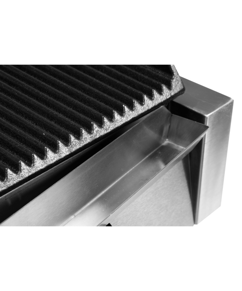 Equipped with a solid cast iron grill plate with optimal dimensions of 345x230mm, featuring a ribbed surface both on the top and bottom, the grill allows for simultaneous, double-sided frying of many ingredients, guaranteeing excellent results.