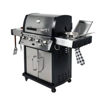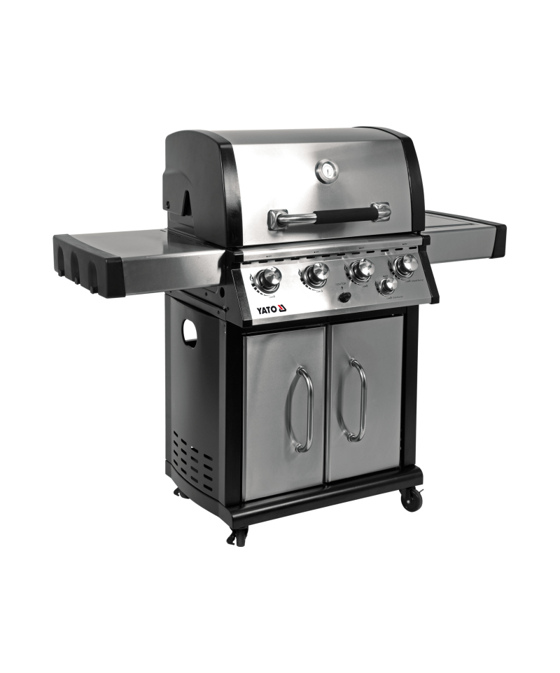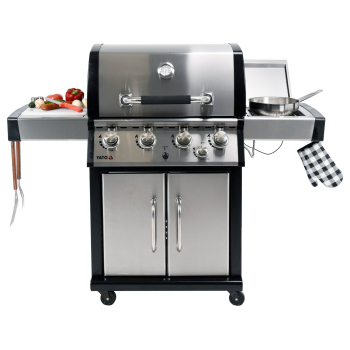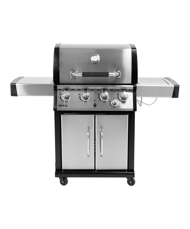 Discover the pinnacle of culinary possibilities with the exclusive YATO 4+1 gas grill, the largest in our collection. Made of the highest quality stainless steel, it boasts a solid cast iron grate that guarantees excellent grilling results. Practical side shelves with hangers and a spacious, lockable cabinet provide an ideal place for spices and accessories, keeping the grilling area tidy. An additional 3.5kW side burner is a versatile solution for cooking and heating dishes in pots or pans, expanding your culinary horizons.