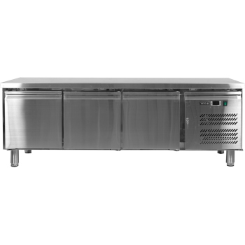 3 x swing doors and 1 sink compartment 300x500x300mm. Circulation of cold air and electronic regulation. Evaporator encased in stainless steel sheet.