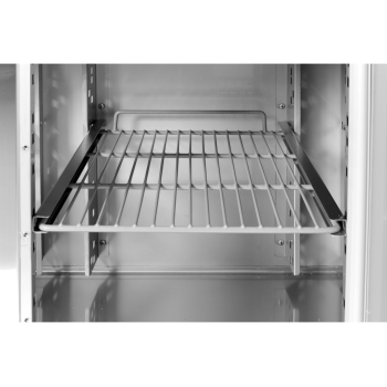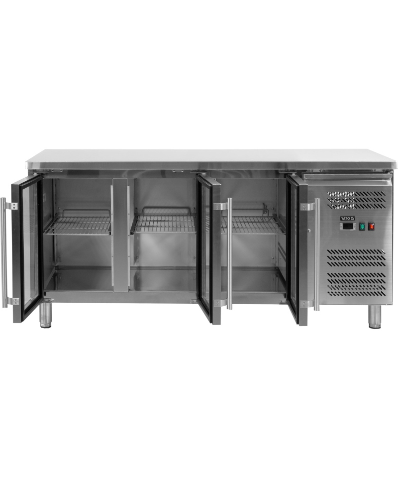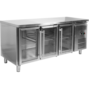 This exceptional refrigerated counter is designed for efficient and hygienic food storage in professional kitchens. Equipped with a side-mounted compressor unit and elegant double-glazed, tempered glass doors, it guarantees excellent visibility and optimal storage conditions.
