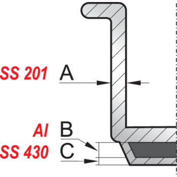 Its robust construction is based on high-quality 201 stainless steel, specially selected for intensive use in professional gastronomy, guaranteeing durability and hygiene.