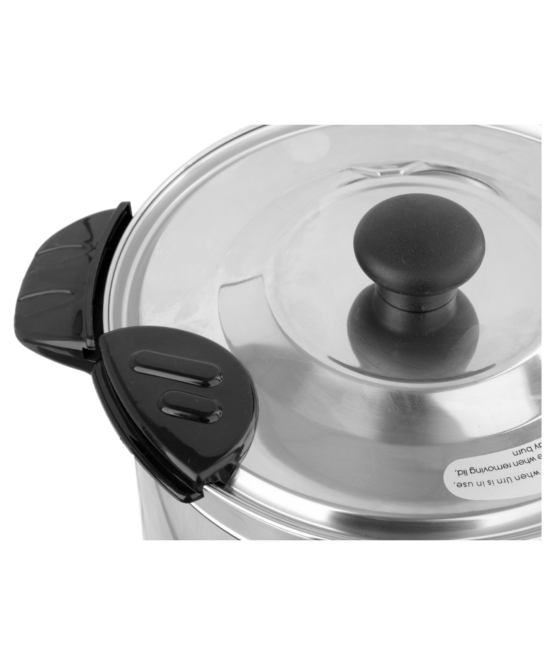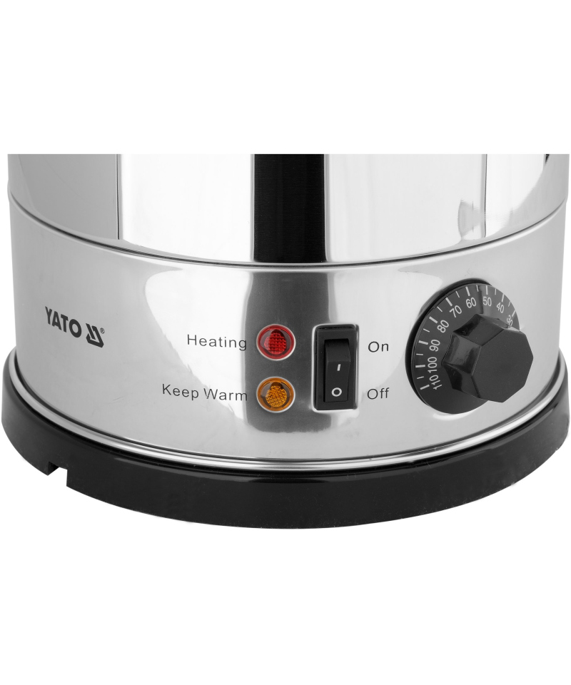 The device offers precise temperature regulation in a wide range from 30°C to 110°C, allowing for ideal adaptation to various needs. Intuitive indicator lights clearly signal the current operating status – heating and maintaining the set temperature. An external water level indicator with a clear scale in liters allows for easy monitoring of the tank's contents. Ergonomic, non-heating handles, placed on both sides, ensure safe and comfortable transport of the device, even when it is full and hot. The innovative TWIST LOCK system guarantees a tight and secure lid closure, minimizing heat loss. A specially designed, non-drip plastic tap ensures clean and precise pouring, eliminating the problem of unwanted drips.