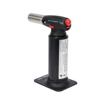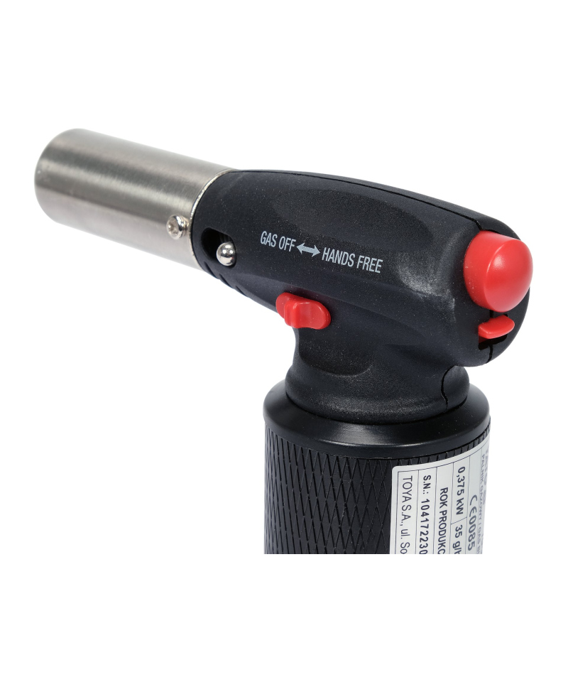 This versatile gas torch, equipped with **reliable piezoelectric ignition** and powered by standard lighter gas, guarantees precision and efficiency. Thanks to **smooth flame power adjustment** and an ergonomic, aluminum body with a non-slip surface, it ensures comfort and safety of use. The torch reaches an impressive temperature of **up to 1350°C**, making it an ideal tool for many tasks. It is perfect for quickly lighting fireplaces, grills, or ovens. In the kitchen, it is indispensable for caramelizing Crème brûlée, impressive flambéing, and precise browning of meats, steaks, and vegetables. It's a professional solution for confectioneries, bakeries, cafes, as well as for every culinary enthusiast. A fully filled tank allows for operation for **90-120 minutes**.