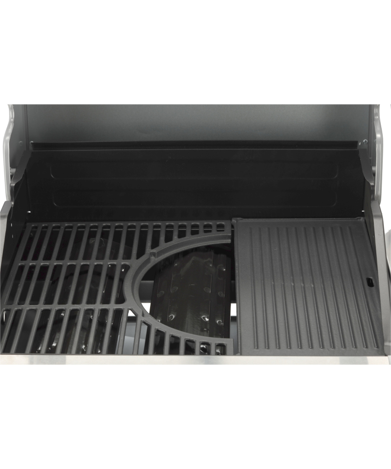 - Round grate (Ø30 cm) integrated with the ribbed grate, with the possibility of removal and replacement with a special stone pizza plate (plate not included in the set). \t