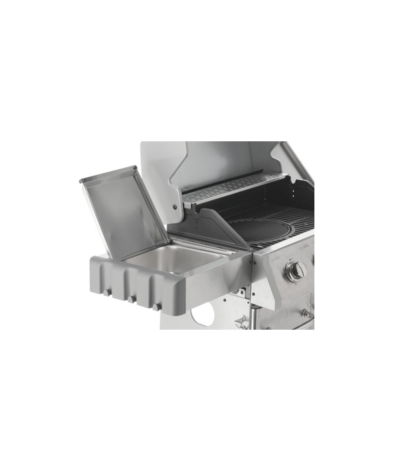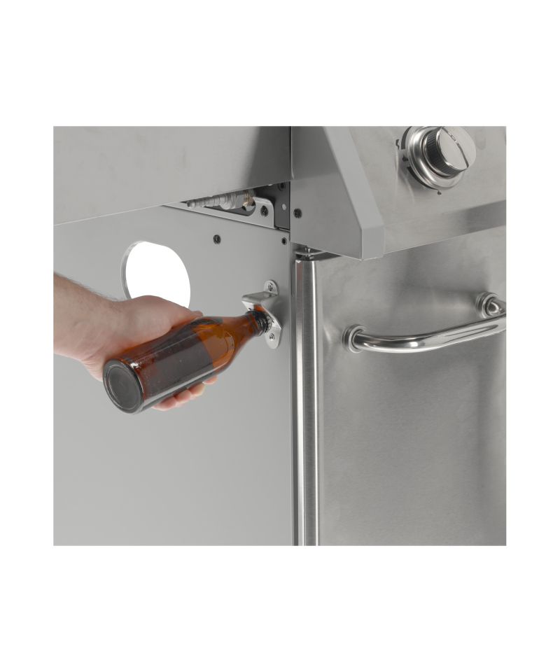 - Convenient bottle opener, integrated into the side of the grill. \t