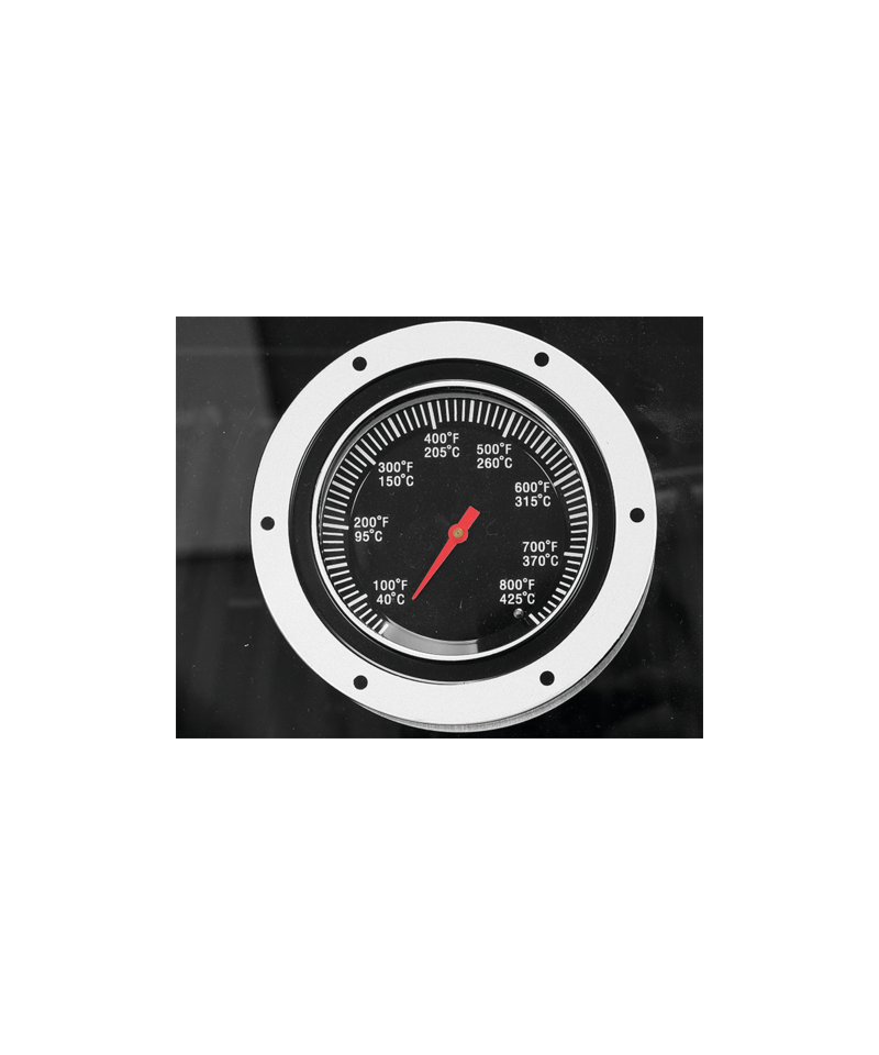 - Lid with a built-in thermometer allows precise temperature control, speeding up the grilling process and protecting food from wind. Smoke generated during cooking enhances the taste and aroma of the prepared dishes. \t