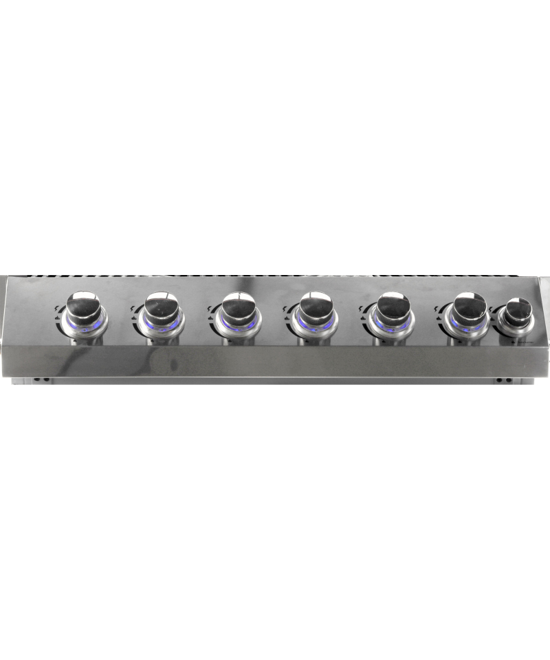- Seven ergonomic knobs with elegant blue LED backlighting, which activates when a burner is turned on. This lighting not only facilitates grilling after dark but also clearly indicates which burners are active. \t