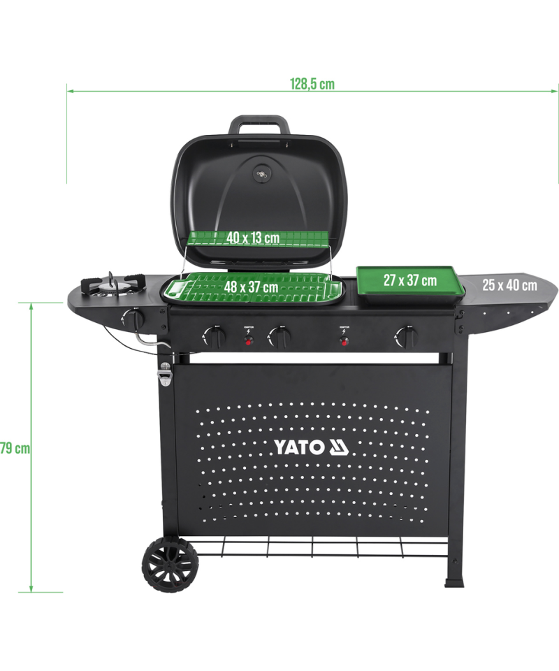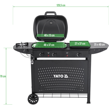 ✔ Number of burners: 4 – including 2 main burners of 2.5 kW each, a 3 kW side burner, and a 3 kW dedicated plancha burner.