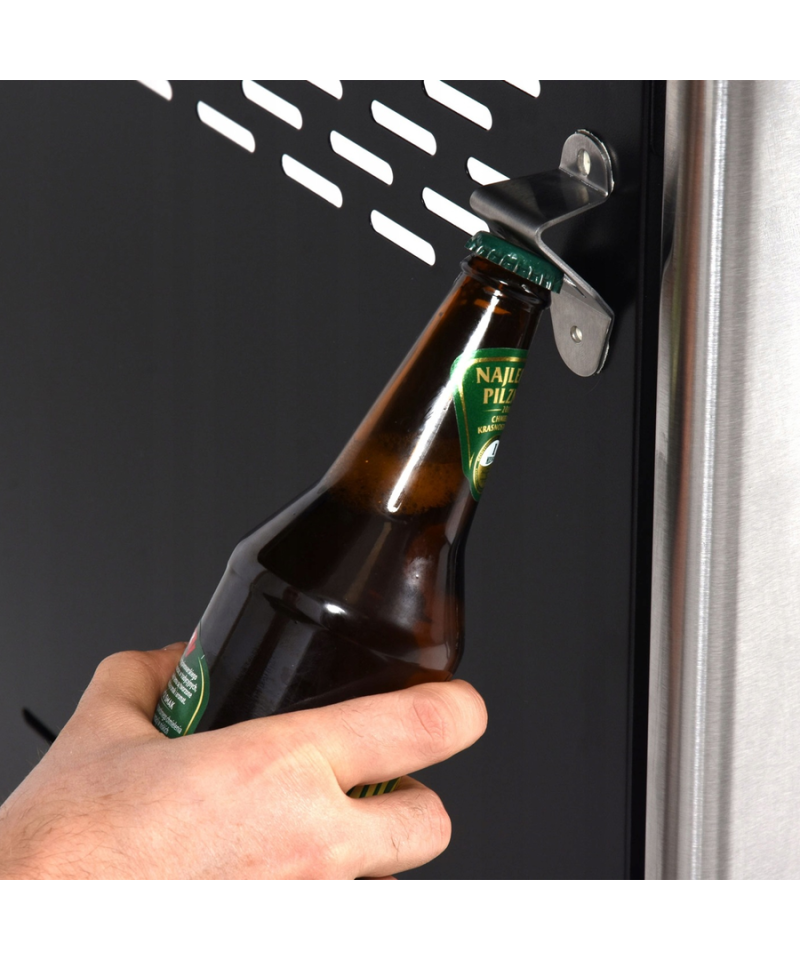 | User convenience is highlighted by an integrated, practical bottle opener, located on the side of the grill, always at hand during outdoor parties. | \t\t
