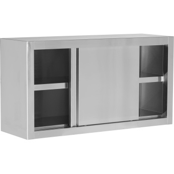 Wall cupboard with sliding doors, closed on 3 sides with a bottom shelf and an adjustable shelf.