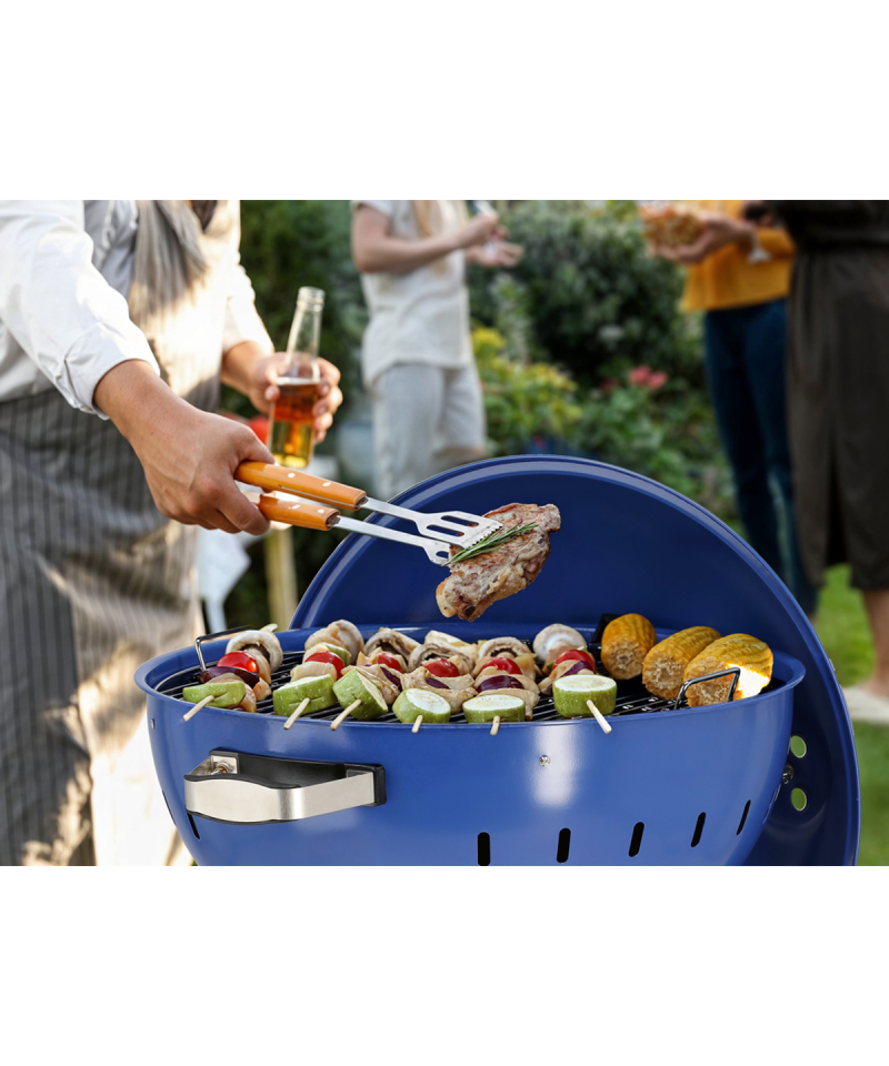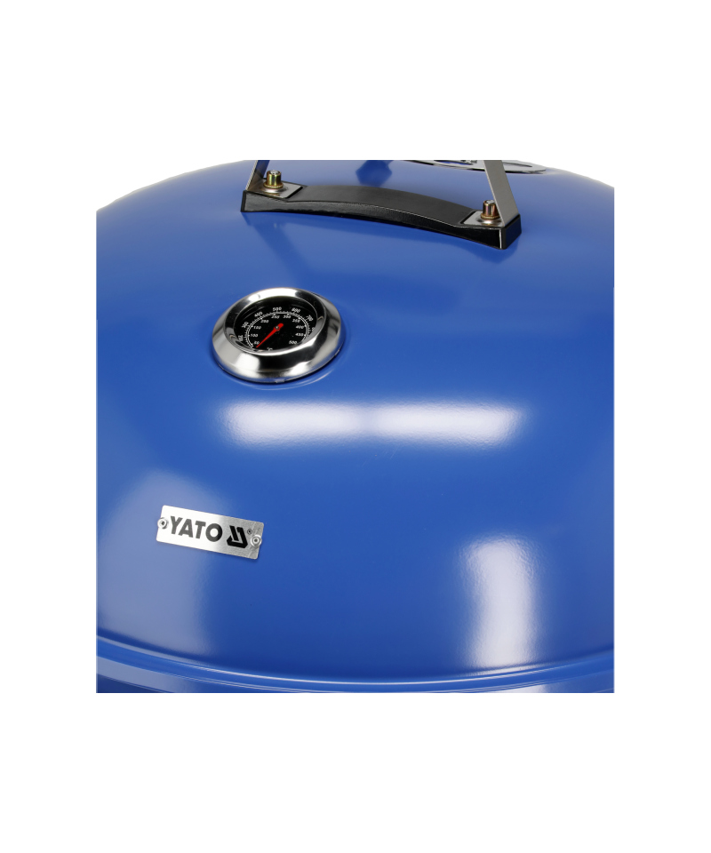 Solid grill lid, made of powder-coated steel in an elegant blue color. The precise thermometer built into the lid allows for convenient and constant temperature monitoring at every stage of grilling.