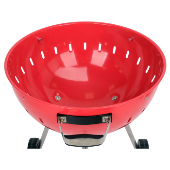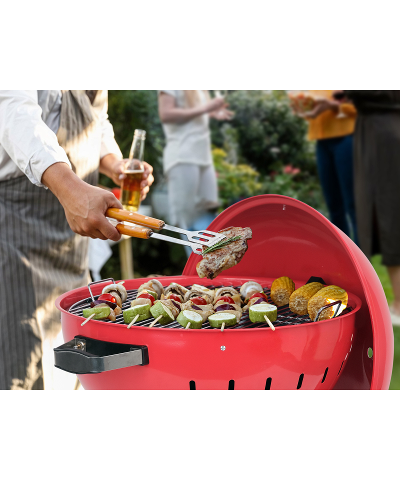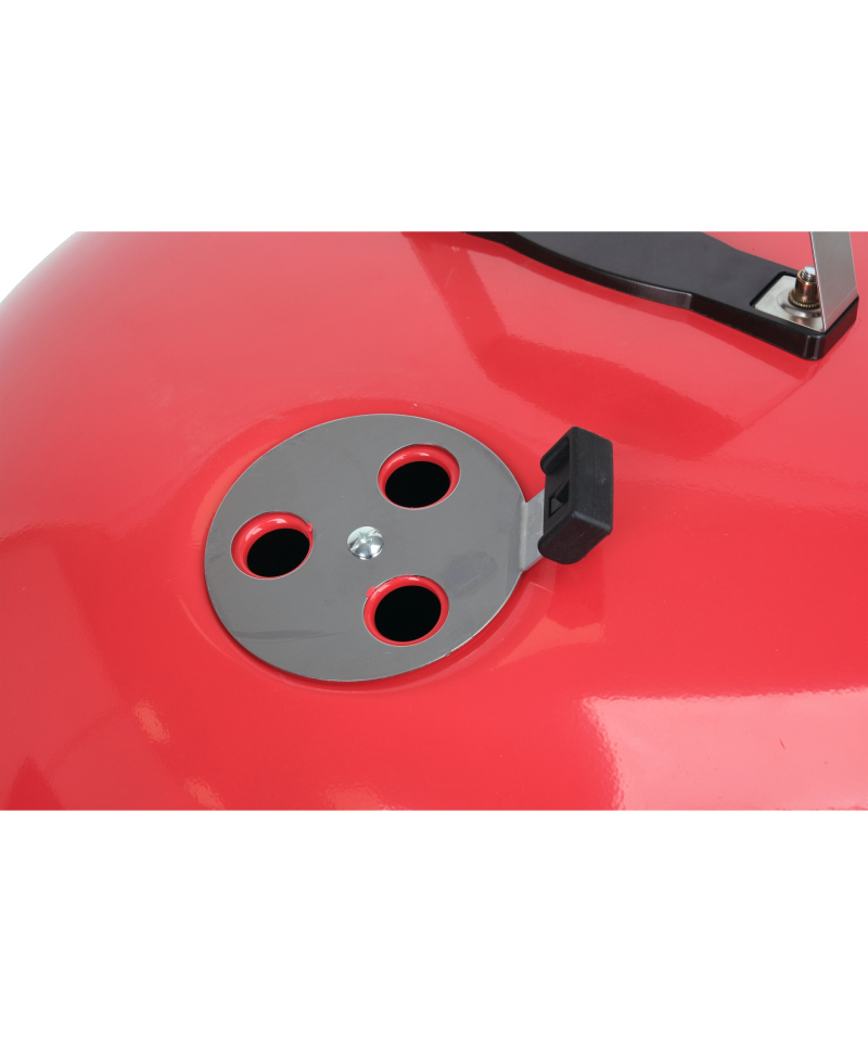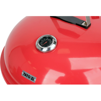 **Solid grill lid**, made of powder-coated steel in an eye-catching red color, features a **built-in thermometer**. It allows for **convenient and precise temperature control** at every stage of grilling, ensuring excellent results.