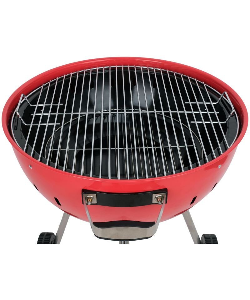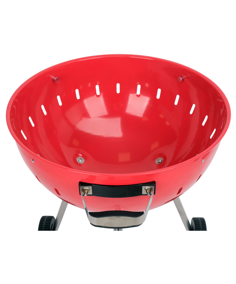 **Chrome-plated XXL grate** with an impressive diameter of 54 cm, reinforced with a central rod for maximum stability. It is not only **lightweight and rust-resistant**, but also **does not crack** and is **extremely easy to clean**.