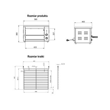 - Precise device dimensions: 580 x 400 x 380 mm. \t